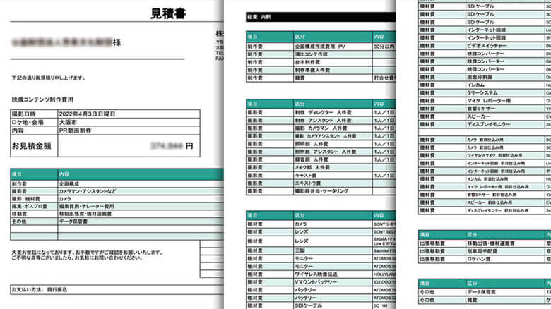 弊社のお見積り内容は、より詳細にご提案させて頂きます。明朗・詳細なお見積りをさせて頂く事でクライアント様にご納得して頂くと共に、詳細に提案するからこそ、「これは省こう」「ここには予算を掛けよう」など、予算の擦り合わせが可能となってきます。